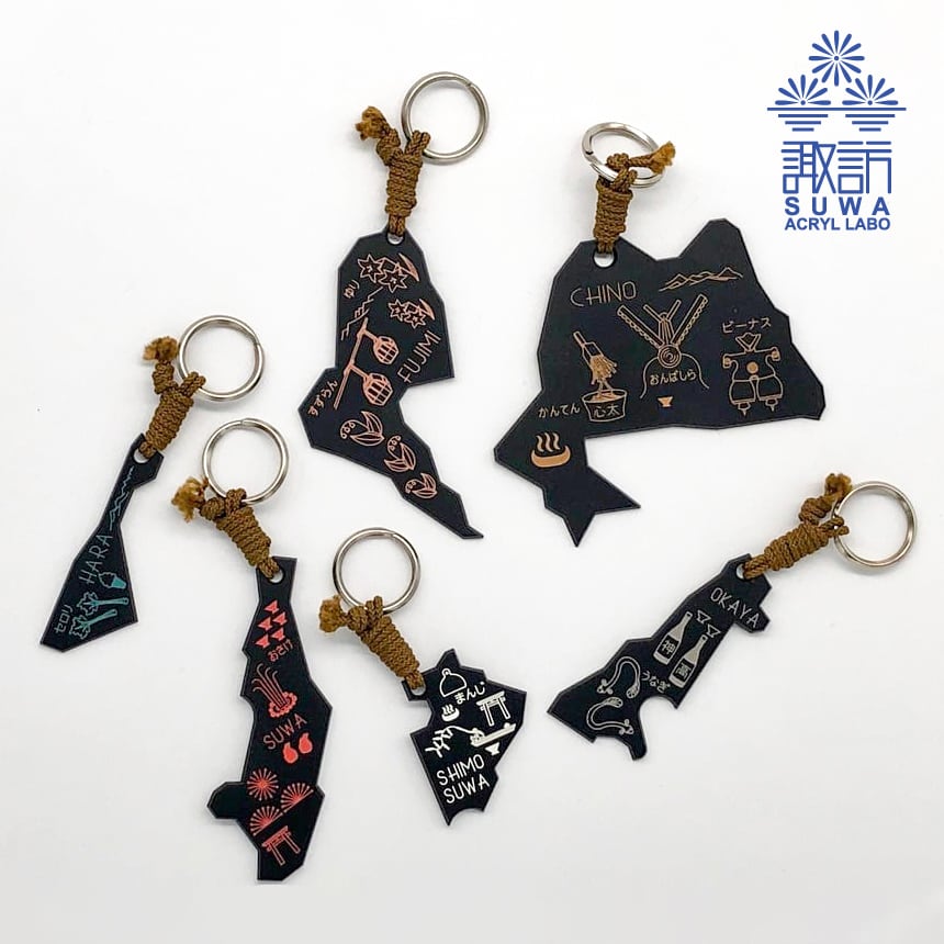 諏訪盆地6市町村の形を象ったキーホルダー!